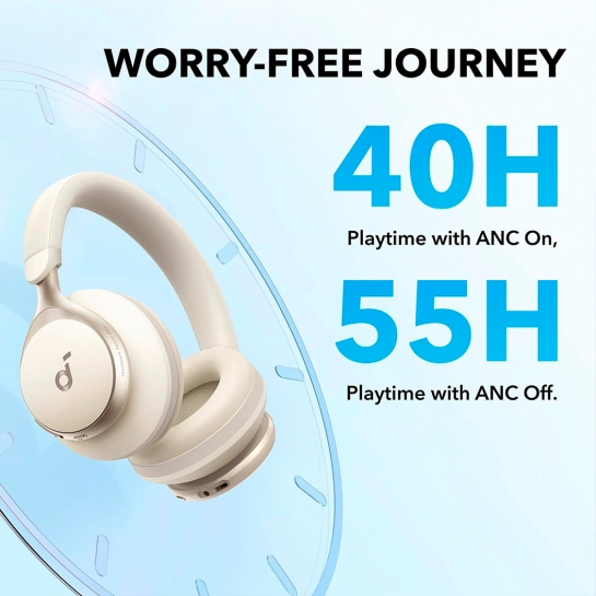 Наушники Anker SoundCore Space One обеспечивают длительное время воспроизведения музыки благодаря встроенному аккумулятору, который держит заряд до 40 часов с включенным активным шумоподавлением (ANC) и до 55 часов при его отключении. Это означает, что вы можете наслаждаться музыкой, подкастами или аудиокнигами в течение нескольких дней без необходимости постоянной зарядки.