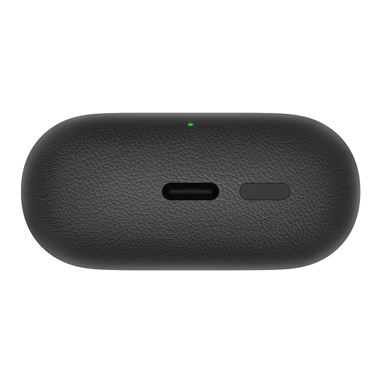 Зарядный кейс сочетает изящную текстуру синтетической кожи с футуристическим металлом, а сами наушники доступны в двух ярких цветах: бежевом и черном.