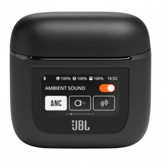 Управляйте настройками наушников, звонками и воспроизведением музыки, контролируйте настройки звука и уровень заряда аккумулятора, а также устанавливайте будильник, не вынимая телефон, через экран зарядного кейса. Наслаждайтесь действительно безупречным опытом благодаря уникальному умному зарядному чехлу JBL Tour Pro 2 без использования телефона или приложения JBL Headphones App.