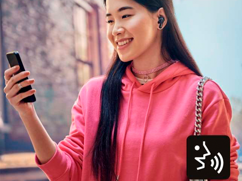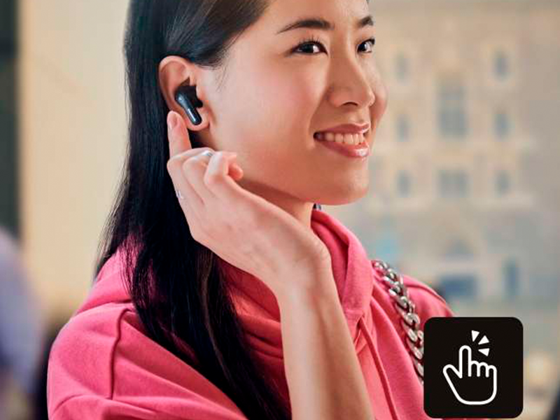 Модель B310W оснащена датчиками прикосновения на обоих наушниках, что позволяет мгновенно переключаться между вызовами и музыкой. Кроме этого, пользователь может легко выбирать различные функции, такие как активация шумоподавления, режим реального окружения или переход к следующему треку.