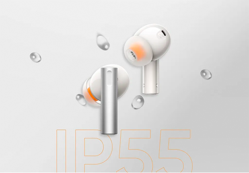 Realme Buds Air 6 имеют рейтинг водонепроницаемости IP55, эффективно защищая от пота и брызг. Можете смело использовать наушники во время тренировок или под легким дождем, не опасаясь, что они повредятся от влаги.
