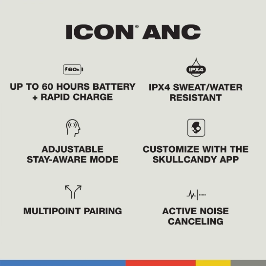 Описание Беспроводные наушники Skullcandy Icon ANC Bone/Orange (S5IOW-S951)