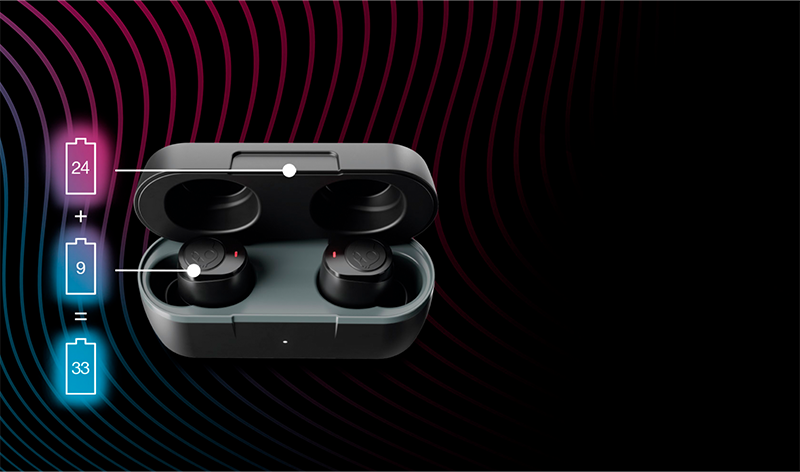 Да, именно так. С этими двумя маленькими наушниками и зарядным чехлом у вас достаточно времени работы батареи для 33 часов музыки, фильмов и подкастов. Лучше сделать более длинный плейлист.