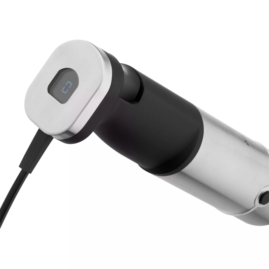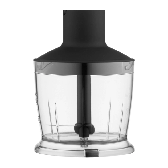 Предусмотрена 5-уровневая регулировка скорости, обуславливая широкие возможности приготовления, и LCD-дисплей для контроля всех процессов. Выделяется низким уровнем шума. Лезвия и ножка – из нержавеющей стали, что обеспечивает гигиеничность и длительный срок службы. Предусмотрены лезвия специальной формы для измельчения льда. Устройство защищено от разбрызгивания, перегрева и перегрузки. В комплектовании: блендер, измельчитель (500 мл), венчик для взбивания, мерный стакан (600 мл).