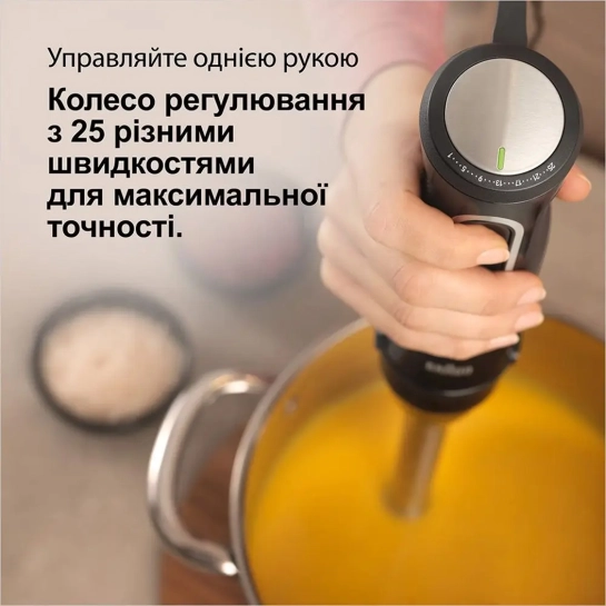- 25 скоростей: благодаря большому количеству скоростей вы можете точно контролировать процесс приготовления и подбирать оптимальную скорость для каждого типа продуктов.