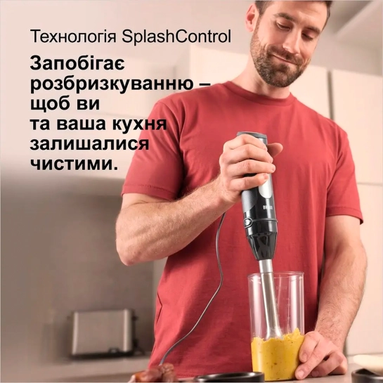 - Технология SplashControl: специальная конструкция предотвращает разбрызгивание, сохраняя вашу кухню чистой. Это особенно важно при работе с жидкими ингредиентами. Технология SplashControl делает процесс приготовления более аккуратным и приятным, так как вам не нужно беспокоиться о брызгах и пятнах.