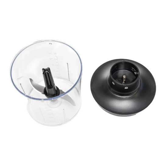 - Комплектация: Ножка блендера с ножом, венчик для взбивания, мерный стакан, чаша для измельчения 400 мл.