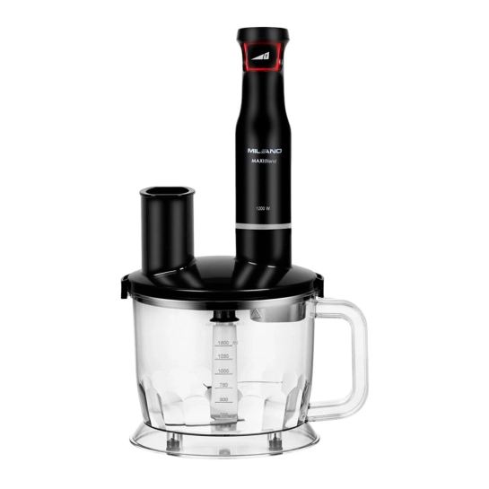 Блендер Milano BL-2012B оснащён измельчителем объемом 860 мл и мерным стаканом на 0.6 л, что позволяет вам всегда держать под контролем объем ингредиентов. Вы легко можете менять насадки и использовать нож для измельчения, насадку-венчик, миксер или тёрку, что значительно расширяет функциональные возможности устройства и делает его незаменимым помощником в приготовлении самых разнообразных блюд.