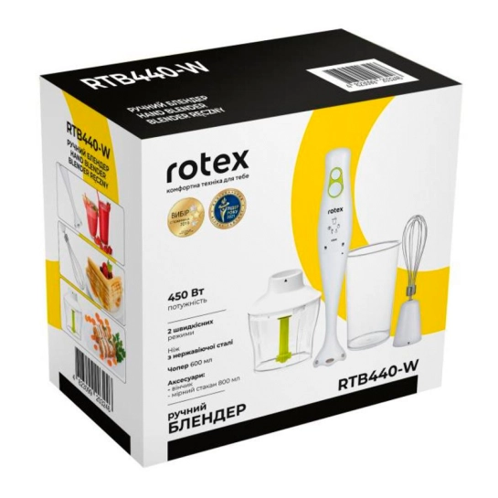 Откройте дверь в мир кулинарного творчества с ROTEX RTB440-W, вашим незаменимым помощником на кухне. Этот погружной блендер, зарегистрированный в Украине, сочетает в себе элегантность и функциональность, предлагая мощность в 450 Вт и два режима скорости для безупречного смешивания ингредиентов. С емкостью стакана в 800 мл и мини-измельчителем на 600 мл, RTB440-W обеспечивает достаточно пространства для приготовления ваших любимых блюд. Благодаря пластиковой ножке и венчику для взбивания, этот блендер гарантирует безопасность и удобство в использовании, а его белоснежный цвет добавит изысканности любому интерьеру кухни. С 8000 оборотами в минуту, ROTEX RTB440-W обещает быстрое и эффективное измельчение, в то время как ручка с петлей для подвешивания обеспечивает дополнительное удобство хранения. Откройте для себя простоту и удовольствие от приготовления с ROTEX RTB440-W, сопровождаемого 12 месяцами официальной гарантии от производителя.