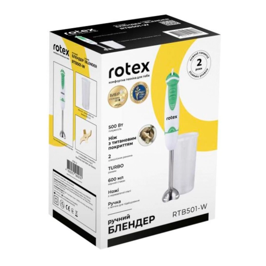 Блендер Rotex RTB501-W – это универсальный помощник на вашей кухне. Благодаря мощности в 500 Вт он легко справится с разнообразными задачами, будь то смешивание или измельчение ингредиентов.