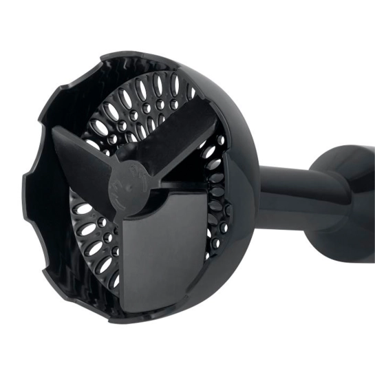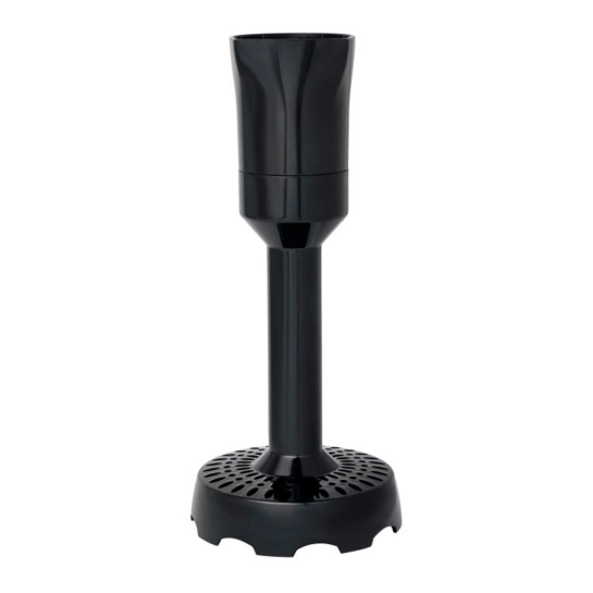 Мощность 1000 Вт. 2 скоростных режима работы. Регулятор скорости на корпусе. Нож Ice Crush из нержавеющей стали с титановым покрытием. Пластиковый корпус со съемной ногой. Нога из нержавеющей стали. Подвесная петля. Аксессуары: мерный стакан с крышкой 600 мл, венчик из нержавеющей стали, насадка для пюре.