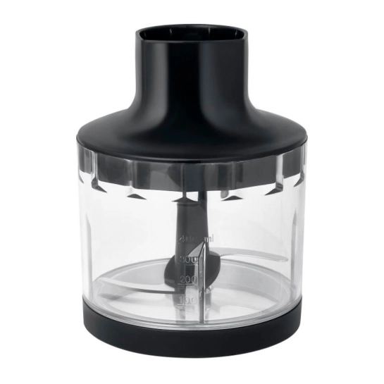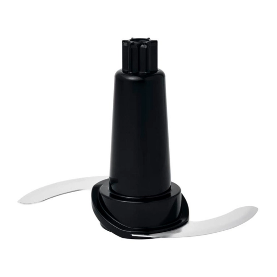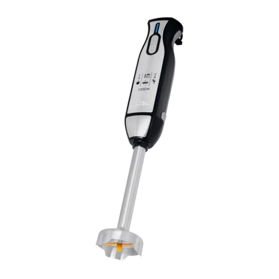Четырехлепестковые ножи блендера изготовлены из нержавеющей стали. Пластиковый корпус оснащен съемной металлической ножкой. Для удобства в использовании, модель оснащается подвесной петлей.