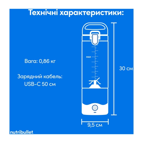 Характеристики для Аккумуляторный портативный блендер Nutribullet NBP003W