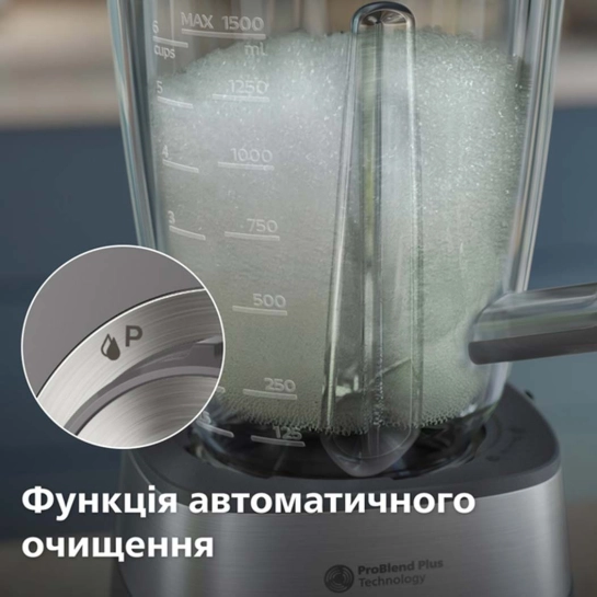 Режим очистки: Автоматическая программа для быстрого и удобного мытья чаши. Прорезиненные ножки: Обеспечивают устойчивость блендера во время работы. Легкая очистка: Чаша и лезвия легко снимаются для мытья.