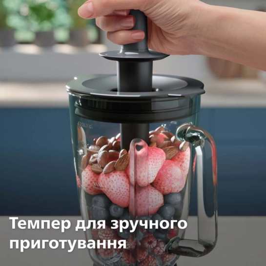 Дорожный стакан: Для удобного приготовления и переноски напитков. Темпер: Помогает толкать ингредиенты в чашу во время работы блендера.