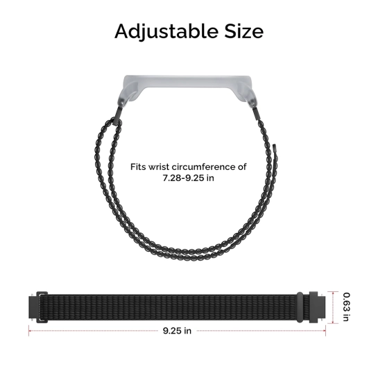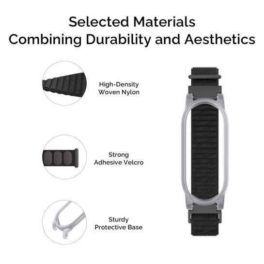 Браслет изготовлен из высококачественного нейлонового волокна. Его тканевая структура легкая, мягкая на ощупь и приятная коже. Благодаря отводящим влагу свойствам браслет предотвращает накопление пота и обеспечивает сухость и комфорт даже при длительном ношении.