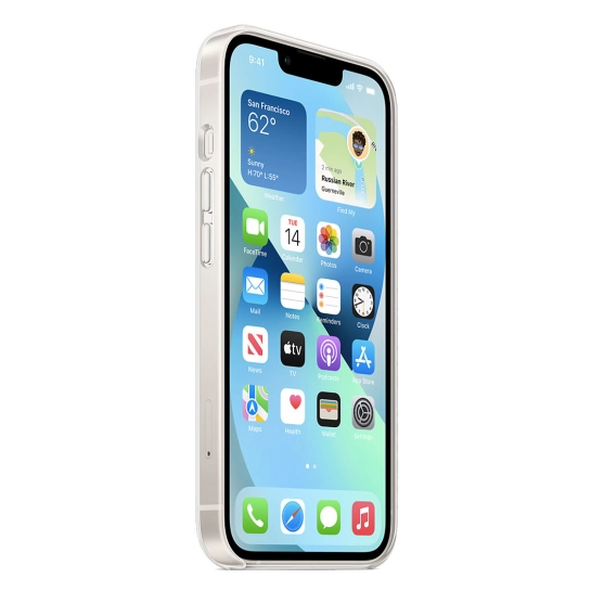 В этом тонком, лёгком и удобном чехле от Apple великолепный цветной корпус iPhone 13 не только хорошо виден, но и надёжно защищён. Чехол сделан из прозрачного поликарбоната и гибких материалов, поэтому он плотно прилегает к кнопкам, и ими удобно пользоваться. Специальное покрытие препятствует появлению царапин на внешней и внутренней поверхностях чехла. Материалы и покрытия не желтеют со временем.