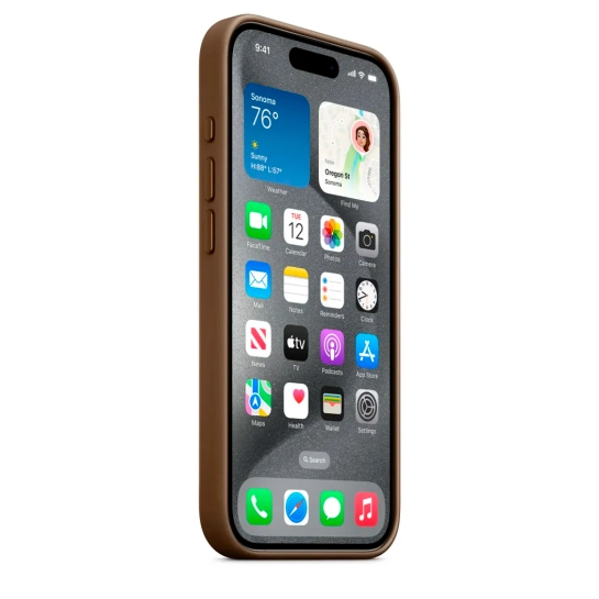 Этот материал, изготовленный из прочного микротвила, имеет мягкий вид, напоминающий замшу. Материал FineWoven также был разработан с заботой об окружающей среде — он на 68 процентов состоит из переработанных материалов и значительно снижает выбросы углекислого газа по сравнению с кожей. Чехол быстро защелкивается на месте и плотно прилегает к вашему iPhone, не увеличивая его объем.