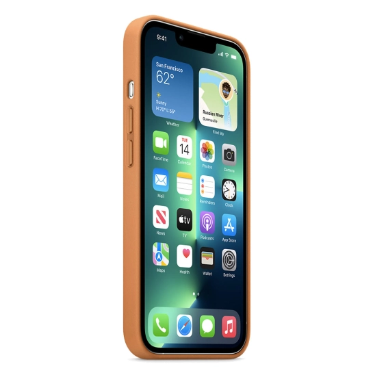 Чехол производится из мягкой кожи высокого качества и надёжно защищает iPhone. Кожа — натуральный материал. Поэтому на чехле, как на хорошем кожаном ремне, могут со временем появиться микротрещины, патина и другие следы использования. Лёгкий след остаётся и от взаимодействия с аксессуарами MagSafe. Если это для вас неприемлемо, рекомендуем приобрести силиконовый или прозрачный чехол.