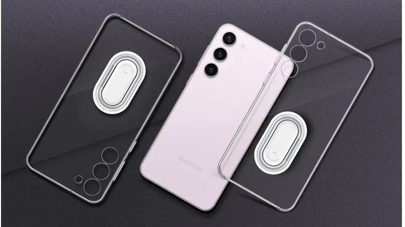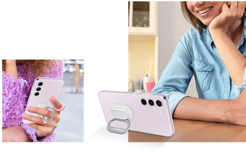 Специальный механизм, встроенный в чехол Clear Gadget Case для Samsung, позволяет прикреплять к нему металлический держатель. С ним удобно использовать смартфон, не боясь его выронить из рук. Он также может использоваться в качестве подставки. Если держатель не используется, механизм прикрывается пластиковой крышкой.