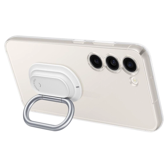 Специальный механизм, встроенный в чехол Clear Gadget Case для Samsung, позволяет прикреплять к нему металлический держатель. С ним удобно использовать смартфон, не боясь его выронить из рук. Он также может использоваться в качестве подставки. Если держатель не используется, механизм прикрывается пластиковой крышкой.
