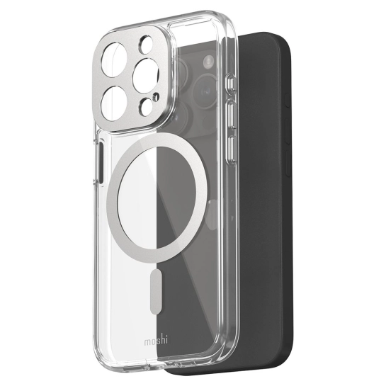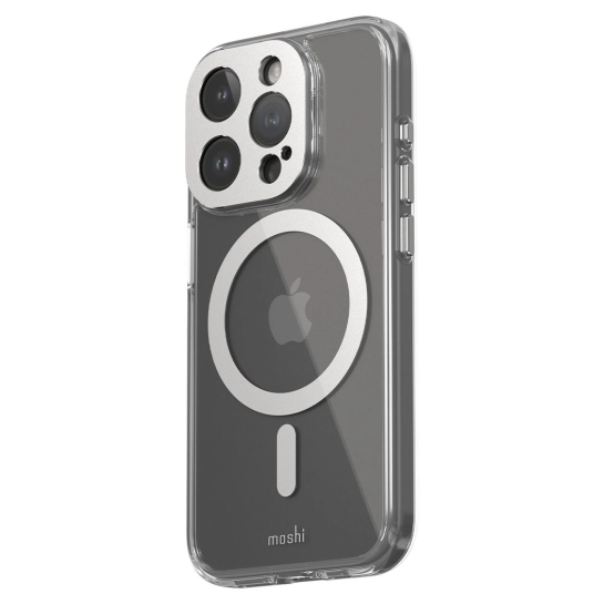 Гибридный защитный чехол Moshi iGlaze в версии MagSafe из ультрапрозрачного и крепкого поликарбоната. Новый iGlaze улучшен прозрачным трехслойным покрытием, которое предотвращает пожелтение. Встроенное кольцо с высококачественными магнитами обеспечивает быструю зарядку с помощью зарядного устройства MagSafe и отличное сцепление аксессуаров (например, кошелька, беспроводного павербанка или автомобильного держателя). Чехол также оснащен алюминиевым корпусом для островка камеры, защищающим объективы камеры. Интегрированные кнопки громкости и кнопка пробуждения обеспечивают эффективную работу всех функций телефона, ограничивая попадание грязи в корпус.