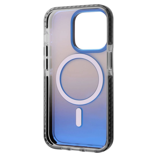 Чехол имеет интересную градиентную окраску, которая плавно перетекает от прозрачного к более насыщенному. Матовое покрытие хорошо сочетается с очертаниями магнита, который не закрывает логотип вашего гаджета.