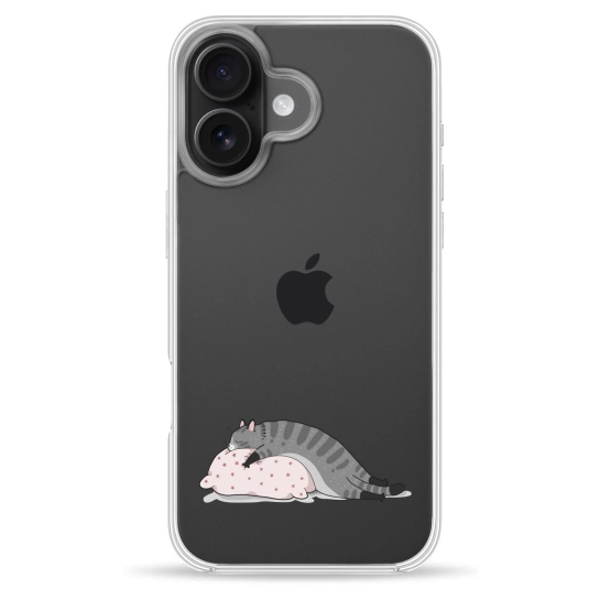 Чехол Pump Clear Case for iPhone 16 Cat On The Pillow