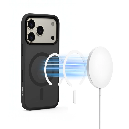 Чехол Pump Matte Case оснащен встроенной технологией MagSafe, что обеспечивает надежное крепление и полную совместимость с аксессуарами MagSafe, такими как зарядные устройства, кошельки и держатели.