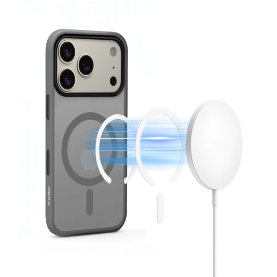 Чехол Pump Matte Case оснащен встроенной технологией MagSafe, что обеспечивает надежное крепление и полную совместимость с аксессуарами MagSafe, такими как зарядные устройства, кошельки и держатели.