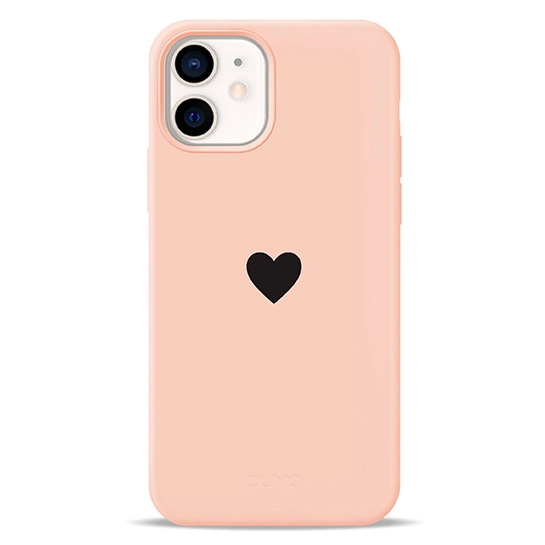 Чехол Pump Silicone Minimalistic Case for iPhone 12/12 Pro Black Heart on Pink #