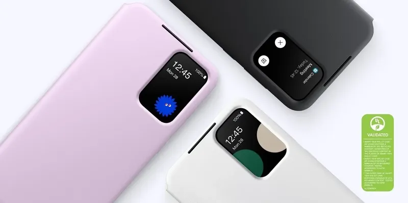Чехол Smart View Wallet предлагает уникальную особенность: небольшое окошко, расположенное на углу экрана вашего телефона, предоставляя доступ без необходимости открывать чехол. Аксессуар доступен в черном, белом или черничном цветах.