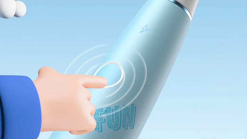 Эргономичный и компактный корпус Kids Electric Toothbrush удобно ложится в детскую руку. Благодаря приятному на ощупь матовому покрытию он не скользит и не ускользает во время чистки. А для включения и выключения щетки достаточно нажать одну кнопку.
