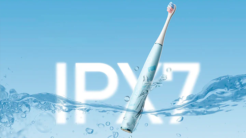 Детская электрическая зубная щетка Oclean Kids Electric Toothbrush не боится влаги. Защита от воды уровня IPX7 позволяет помыть девайс под водой и гарантирует, что со щеткой ничего не случится, если малыш уронит ее в воду.