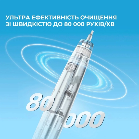 Мощный моторчик внутри щетки создает до 80 000 колебаний или до 40 000 оборотов в минуту. Благодаря этому остатки пищи и налет легко и быстро удаляются с зубов и межзубных промежутков. Главное – приучить малыша правильно держать щетку. Для ребенка от 6 до 12 лет это несложная задача.