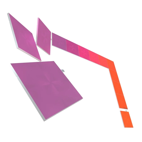 Умная система освещения состоит из 4 квадратных панелей белого цвета. Длина одной стороны – 15 сантиметров Панели монтируются на стену или потолок и подключаются друг к другу в произвольном порядке. К сети получается только одна из панелей, остальные получают энергию по цепочке. Внешняя часть панелей сенсорная, чтобы пользователь мог управлять системой освещения касаниями. Так же панели также синхронизируются со смартфоном в мобильном приложении Nanoleaf Smarter Series, чтобы вы могли настраивать цвета, эффекты и сценарии, а также управлять системой удаленно. Кроме того, приложение позволяет настроить голосовое управление через Siri, Google Assistant или Amazon Alexa.