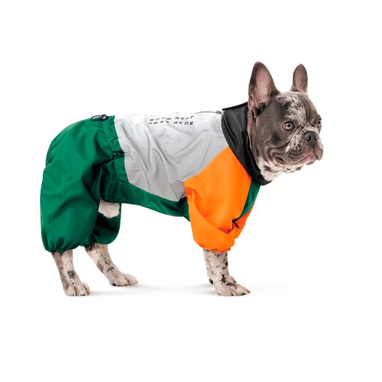 Водонепроницаемая ткань защищает от влаги и ветра, высокий воротник делает модель еще более уютной. Резинки на рукавах, высокий воротник и подкладка защищают от брызг и грязи. Удобная застежка-молния на спине имеет планку, которая предотвращает попадание шерсти между зубцами. Подложка создает воздушную прослойку, благодаря которой песику будет сухо и тепло даже в сильный дождь.