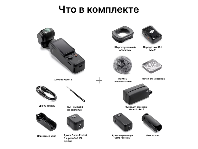 - Широкоугольный объектив Osmo Pocket 3 — 1 шт.