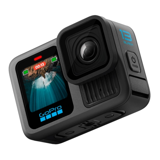 HERO13 Black создана для самых жестких испытаний. Камера выдерживает погружения на глубину до 10 метров и обеспечивает превосходное качество изображения благодаря влагозащитной крышке объектива, которая уменьшает блики и искажения. Новый аккумулятор Enduro дает еще более длительное время работы, независимо от температуры окружающей среды. Рассчитывайте на 1,5 часа съемки в 5.3К или 4К и на 2,5 часа в 1080p.