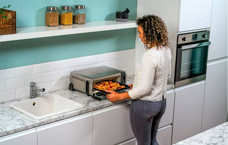 Электрическая печь Ninja сэкономит вам место на кухне, поскольку заменит духовку, тостер, гриль и жаровню, а также подойдет всем, кто хочет тратить меньше времени на приготовление пищи и разнообразить свой рацион новыми блюдами.
