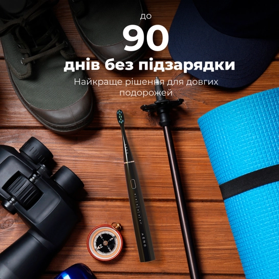 Берите зубную щетку AENO с собой и поддерживайте гигиену полости рта привычным для вас способом. Один полный заряд обеспечивает до 90 дней ежедневного использования.