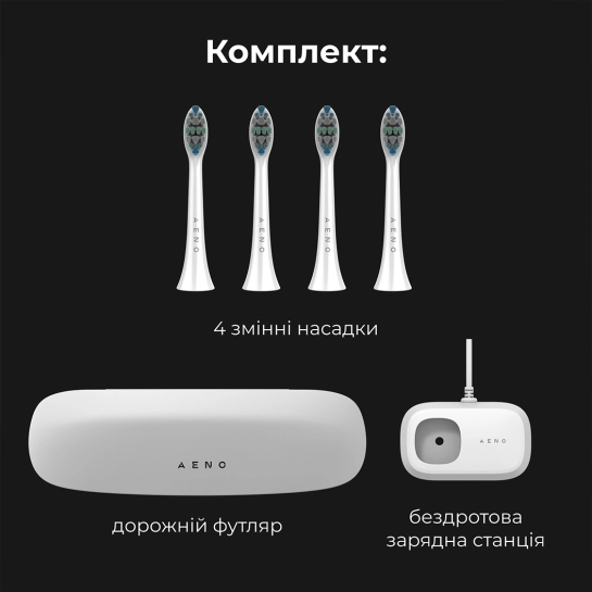 Зубные щетки AENO Sonic изготовлены из крепких, надежных материалов. Корпус устройства имеет защиту от потери цвета и крепкую металлическую ножку внутри.