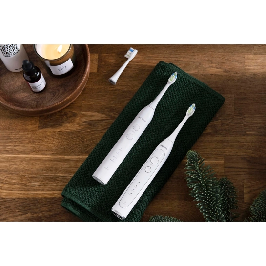 Класс защиты IPX7 – защищен от попадания влаги даже во время длительного погружения в воду. Питание щетки происходит благодаря встроенному аккумулятору Li-Ion с емкостью 650 мАч, этого хватит до 25 дней работы на одном заряде. О необходимости подзарядки подскажет светодиодный индикатор. Щетка заряжается беспроводным путем с помощью индукционной док-станции с идущим в комплекте USB-коннектором.