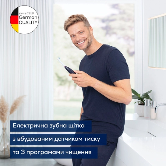 Электрическая зубная щетка для ежедневного ухода за зубами со встроенным датчиком давления и тремя программами чистки. Мощный аккумулятор может работать до 45 дней без подзарядки. В комплект входит удобный футляр для хранения, что обеспечивает максимальный комфорт в поездках.