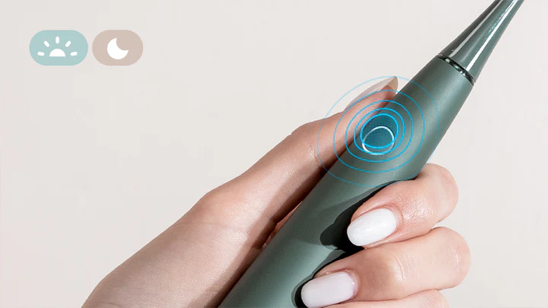 Щетка Oclean Air 2T выполнена в стильном минималистическом дизайне, имеет зеленую окраску оттенка эвкалипта. Удобно лежит в руке, а за счет малой тяжести ей могут пользоваться как взрослые, так и подростки и дети. Также щетка может быть выполнена в чистом белом, что подчеркнет ваш стиль и аккуратность.