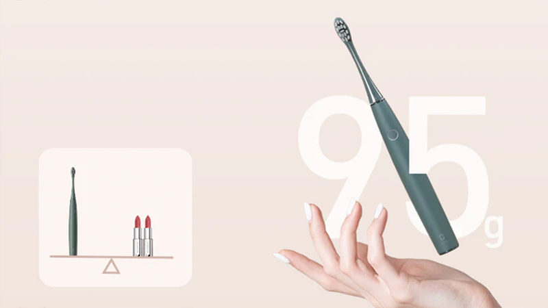 Щетка имеет облегченную конструкцию и корпус из матового пластика высокой плотности, за счет чего ей очень легко управлять и маневрировать во время утренней и вечерней чистки зубов. Звуковая щетка для чистки зубов Oclean Air 2T весит всего 95 грамм.