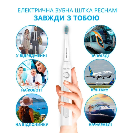 Электрическая зубная щетка PECHAM Travel предназначена для взрослых и детей, включая чувствительные зубы, характеризуется:
