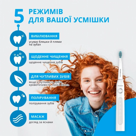 - наличием пяти режимов: удаление налета, отбеливание, полировка, бережная и повседневная очистка;