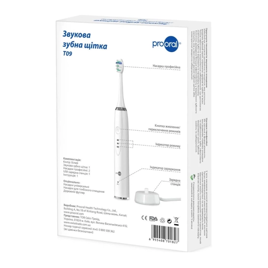Характеристики для Электрическая зубная щетка Prooral T09.1 White