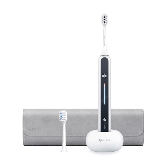 S7 Sonic – очередная зубная щетка от DR.BEI, которая очень симпатично смотрится благодаря сочетанию белого пластика с черной вставкой, украшающей лицевую часть корпуса устройства. На корпусе зубной электрощетки предусмотрена всего 1 механическая кнопка для включения, а также переключения режимов работы. Кроме того, лицевая часть DR.BEI S7 Sonic имеет продолговатый светодиодный индикатор, несколько напоминающий сенсорную панель. DR.BEI S7 длиной 25.1 см и шириной 2.47 см, весит всего 130 грамм.